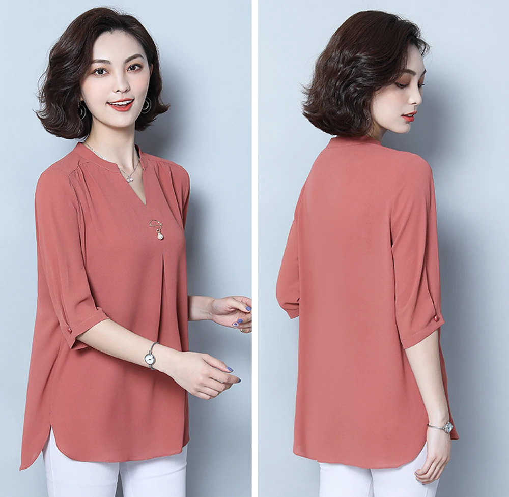 Plus Size Blouses for Women 4xl 5xl 6xl Large Big 34 Sleeve Chiffon Top Tunice 2020 Summer Fashion Korean Style Office Clothing |
